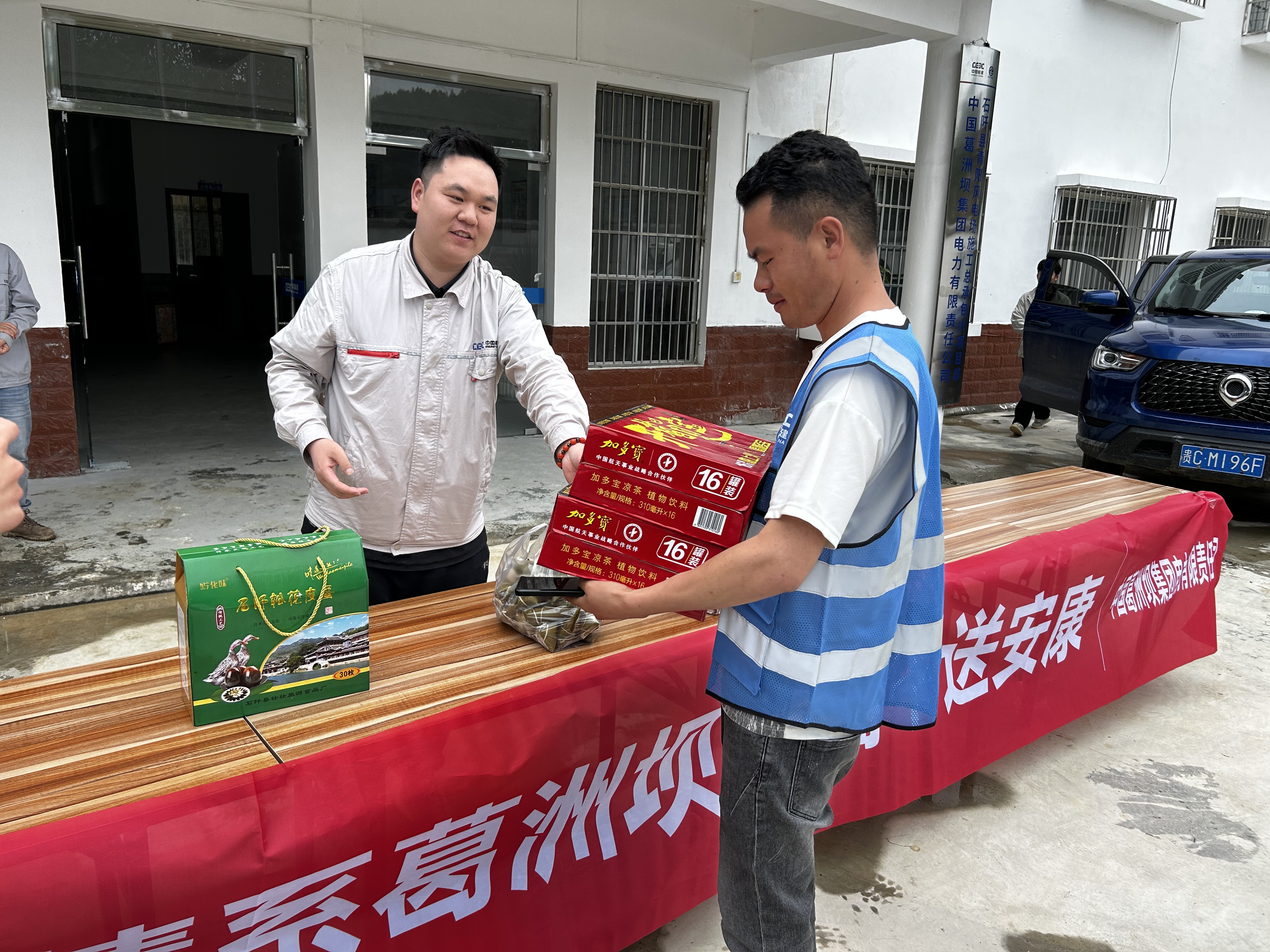 6月2日,青陽(yáng)風(fēng)電項(xiàng)目部前洋溢著溫馨氛圍,石阡縣青陽(yáng)風(fēng)電場(chǎng)施工總承包項(xiàng)目部組織開展了端午節(jié)福利發(fā)放活動(dòng),現(xiàn)場(chǎng)懸掛著紅底白字的“情系葛洲壩,端午送安康”橫幅,桌上整齊擺放著粽子、加多寶涼茶等節(jié)日物資。在活動(dòng)過(guò)程中,項(xiàng)目領(lǐng)導(dǎo)與施工班組親切交流,親手將節(jié)日禮品遞到工友手中,感謝他們?yōu)轱L(fēng)電場(chǎng)建設(shè)的辛勤付出,一名接過(guò)禮品的工人笑著說(shuō):“項(xiàng)目部惦記著我們,干活更有勁了!”